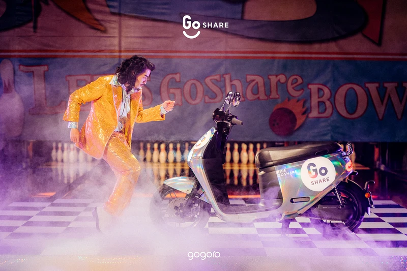 • GoShare 致敬 Disco 文化標誌性的大膽風格與搶眼個性,設計迷人奔放的七彩炫光車身,10 輛車牌號碼含 「1、7、3 」的 Gogoro 2 穿上華服,化身璀璨的「GoShare Disco」,盡情展示「一起閃」的霸氣宣言。