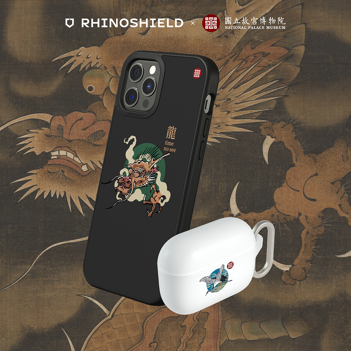 「RhinoShield犀牛盾X故宮博物院」手機殼有可自由切換背蓋殼與邊框模式的Mod NX系列、一體成型的SolidSuit防摔手機殼系列,以及Clear透明手機殼可選擇;AirPods保護殼則為AirPods 3專屬。