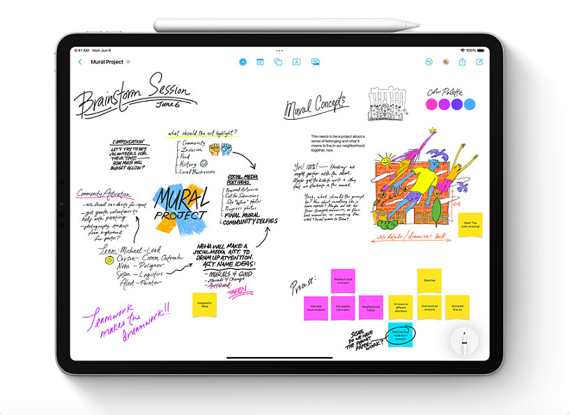Freeform 是一款全新的app,將於今年稍晚在 iPadOS 上推出,擁有靈活的畫布,具有讓使用者在同一個地方合作、瀏覽、分享的能力,不需要擔心版面配置和頁面大小問題,且全面支援 Apple Pencil。使用者可以在新增內容或編輯時查看他人貢獻的內容,享受即時合作空間,合作者可以從 FaceTime 開啟合作專案,並直接從「訊息」討論串中看到他人的更新內容。