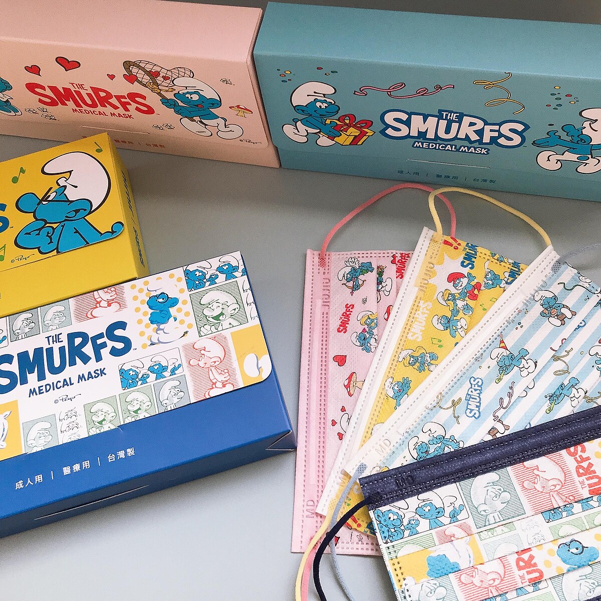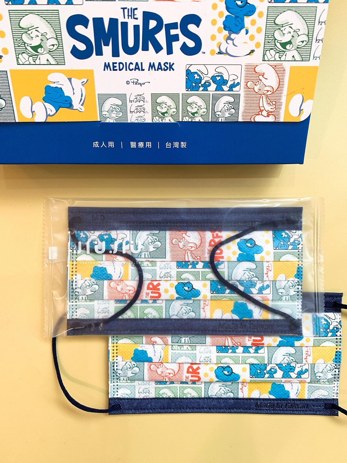 另外還有「經典角色款」以及「繽紛漫畫款」,各種俏皮逗趣的藍色小精靈等著各位收藏,親親JIUJIU「藍色小精靈」聯名口罩將於6月8日起小三美日、康是美、博客來線上通路開始販售。