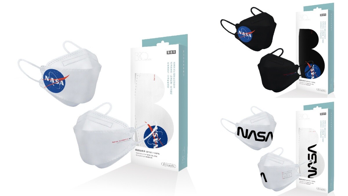 搭上近期的太空話題熱潮,BioMask在首次推出的韓系4D立體口罩中,直接找上大家都不陌生的NASA美國太空總署合作!將兩款官方Logo:insignia、Worm印上外層,並巧妙搭配黑、灰、白三種色選,戴出門立刻成為人群焦點。