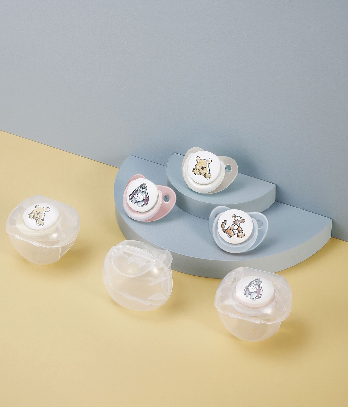 Debby也非常讚賞「NUK X Disney小熊維尼聯名新生兒禮盒」中,超可愛的迪士尼矽膠安撫奶嘴。這個能滿足寶寶口腔期需求,並有牙醫師認證可協助寶寶訓練嘴唇、下頷和舌頭肌肉,減少牙齒排列不正風險的安撫奶嘴,完全是育兒之路上必可或缺的神隊友!「NUK安撫奶嘴還有附奶嘴儲存盒,可以微波消毒,加水到刻度後加熱3-4分鐘(360-550W)就清潔完成,而且方便攜帶…」