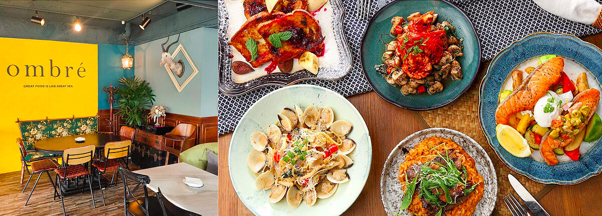 Ombré 營造古典美歐式風格,是間提供豐富多國料理的餐酒館,踏上2 樓空間映入眼簾的是自然光與古董配件所交織呈現的復古華麗感,不論是用餐或是小酌都別有一番風味。
