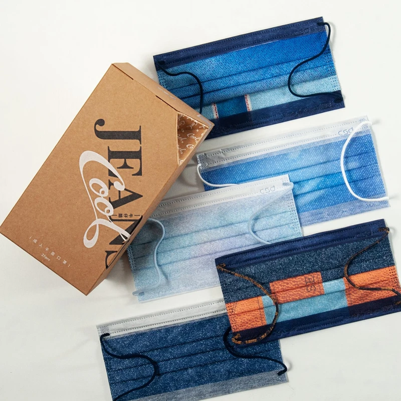 這次的「牛仔酷JEANS COOL」口罩系列共有4款新配色,包括「刷淡」、「水洗」、「拼接」與「車縫」,加上經典「丹寧牛仔」,還有牛皮紙包裝盒,造出牛仔粗曠美感。