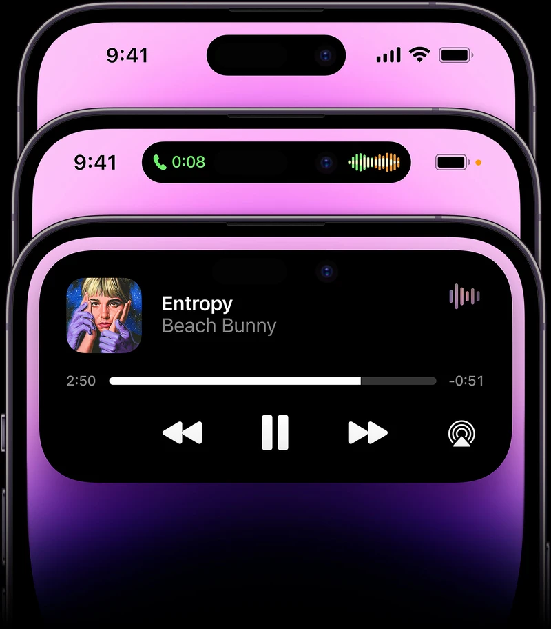 iPhone 14 Pro的全新「動態島」功能相當有趣,將硬體和軟體合而為一,能將音樂、運動賽事比分、FaceTime,以及更多消息醒目浮現於一處,並可搭配各種 app 使用。