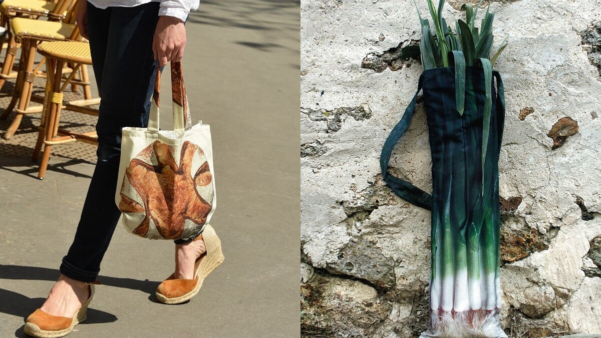 留著法國浪漫血液的設計品牌 Maron Bouillie,將日常生活常見的食材如紅蘿蔔、青蔥、圓麵包、法式長棍等,以等比例大小圖案轉印到環保布料上。每款更別具巧思,像是青蔥款有特別加長、麵包款式則有完美圓弧外型,並都採用有機棉作為內襯,能呵護袋中物。