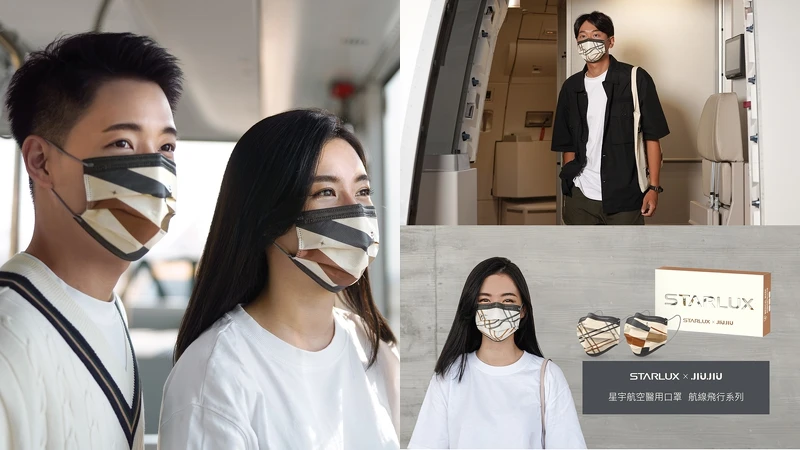 日前也再次攜手親親JIUJIU口罩推出「航線飛行」系列口罩,內含兩款「航線款 The Network 」「飛行款 The Journey」兩款設計,皆加入星宇航空的品牌識別色:大地金、玫瑰金、曜石灰,化作搶眼幾何、線條元素,還有上升的北極星及LOGO尾翼,喚醒你我持續探索世界的熱情與渴望。「航線飛行」醫用口罩,每盒兩款共10片,售價199元。