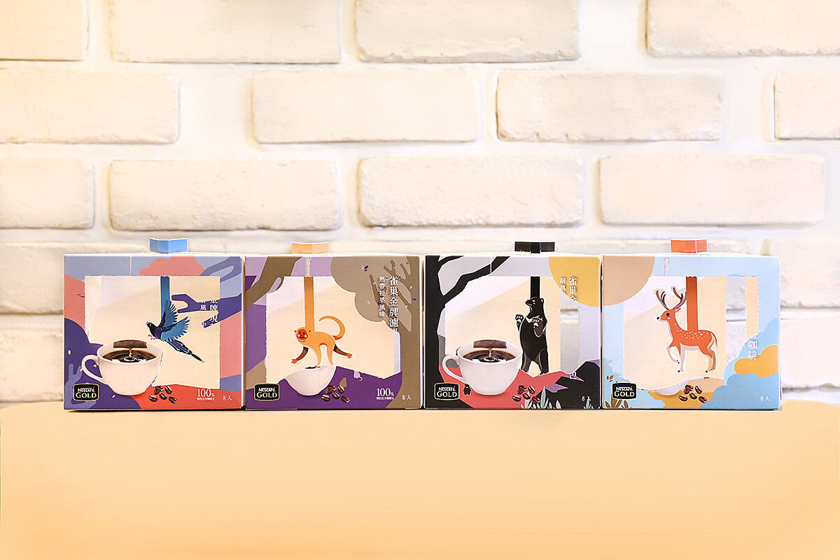 (1)與成功大學工業設計學系攜手賦予包裝第二生命—咖啡紙盒化身「光影互動盒」!結合生態保育、集結台灣從北到南特有種動物「台灣藍鵲、台灣獼猴、台灣黑熊、梅花鹿」,讓消費者在喝咖啡之際,可以簡單將咖啡紙盒變身成「投影互動盒」,手機打燈就能看到動物在棲息地山林間穿梭,讓包裝成為喚醒環保及生態意識的閃光點,並產生出新的生命週期。