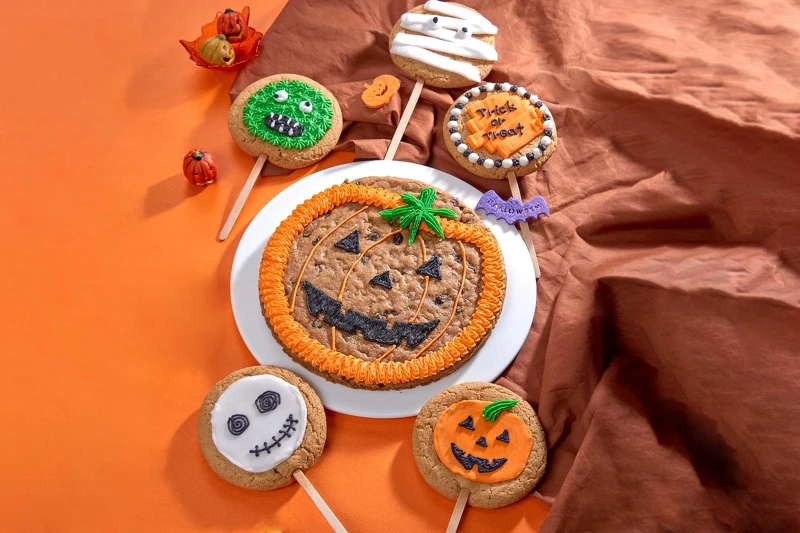 站前店即精選一系列造型甜點,像是菲爾斯太太的南瓜先生Cookiecake 8吋、搗蛋棒棒糖及Krispy Kreme的萬聖同學會甜甜圈禮盒,可愛逗趣又搞怪的造型甜點,絕對會讓人手一滑通通買回家!