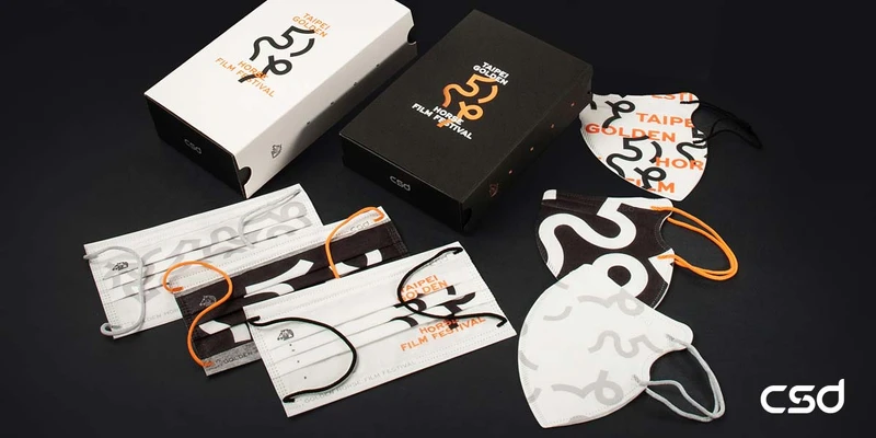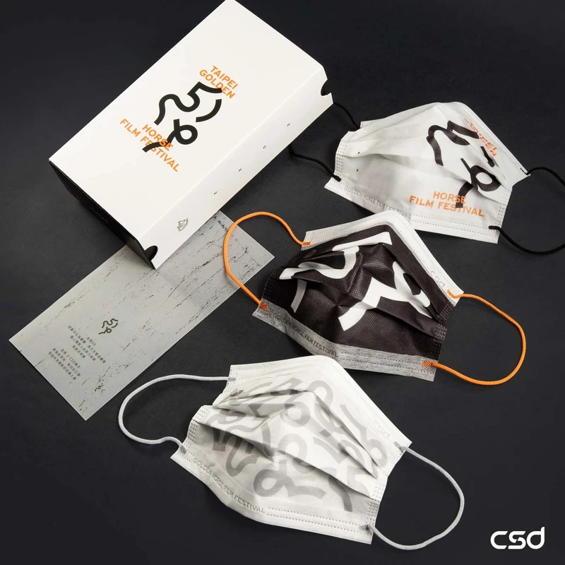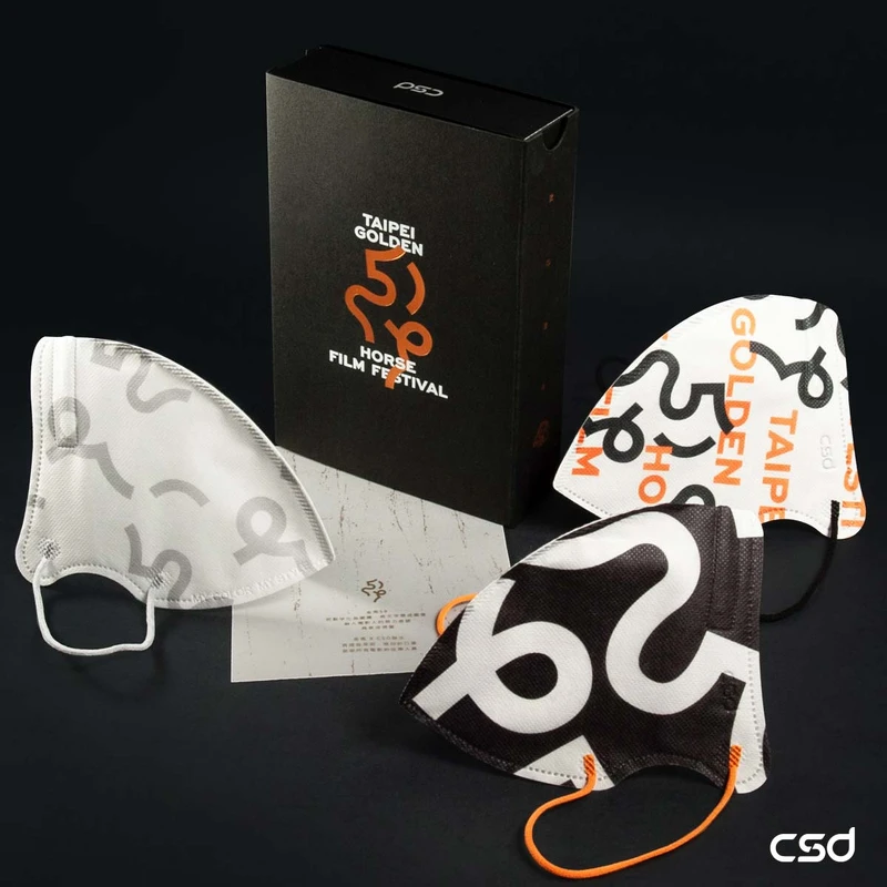 CSD中衛把金馬的主視覺——59屆的數字化成圖騰,將文字變成圖像,融入電影人的努力痕跡,搭配今年(2022)主色系亮橘、白、黑,透過線條與圖騰的變化,打造金馬專屬口罩!