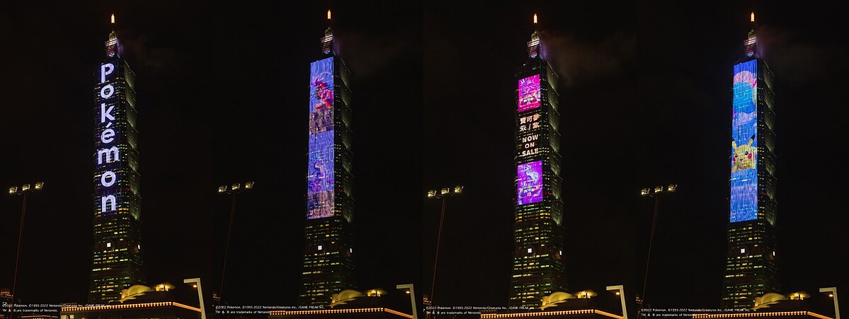 台北101的T-Pad燈網以往配合跨年活動皆於12月初啟動,而本次為了紀念《寶可夢 朱/紫》發售,特別於11月期間提早開始,影片播放時間於發售日11月18日起至11月20日為止,每晚18點至22點時段展示,合計共3天的期間限定播放,機會難得敬請把握!