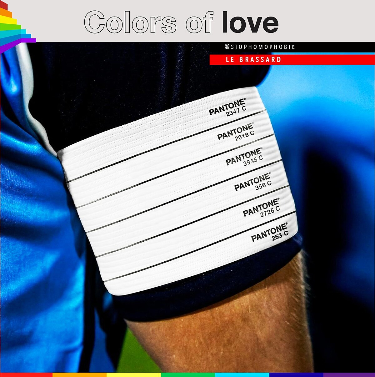 此舉引發國際間熱議,國際彩通公司Pantone便攜手法國「停止恐同協會」STOP HOMOPHOBIE,特別推出「全白彩虹旗」!在「Colors of love」廣告中,用色票號碼取代七彩顏色,甚至特別為運動員設計出「全白彩虹袖標」設計,使LGBT族群可以大聲疾呼自己的身份、表達自豪。
