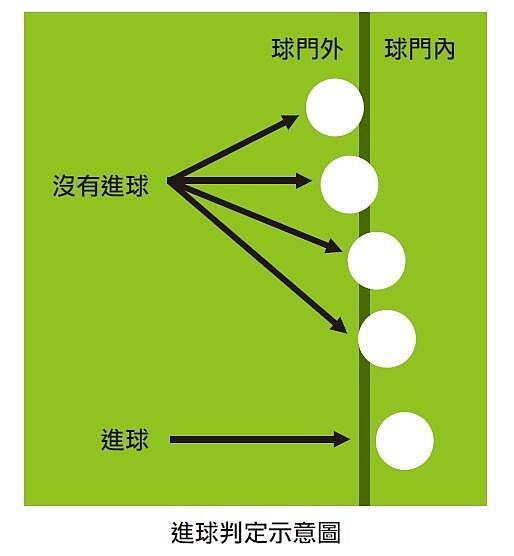 當球無論在空中或地面,整個越過了球門內的球門線,而進球一方在進球前沒有犯規的話,便算進球。