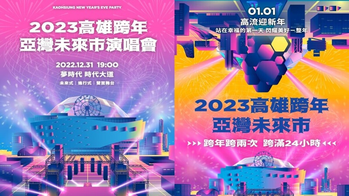 只有高雄才能超越高雄!2023高雄跨年將一口氣舉辦兩場,12/31到元旦1/1都有精彩節目,12/31跨年晚會回歸夢時代舉行,會有告五人登上全台跨年史上首座「雙面舞台」開場,帶來「雙倍」跨年體驗,倒數完後會發射180秒「亞灣跨年花火」點亮夜空。元旦當晚會舉辦「高流幸福式演唱會」,林宥嘉、蘇慧倫、韋禮安、熊仔、9m88、白安等人將從8點開始輪番演出,搭配12吋「大港花火」為新的一年拉開美好序曲。