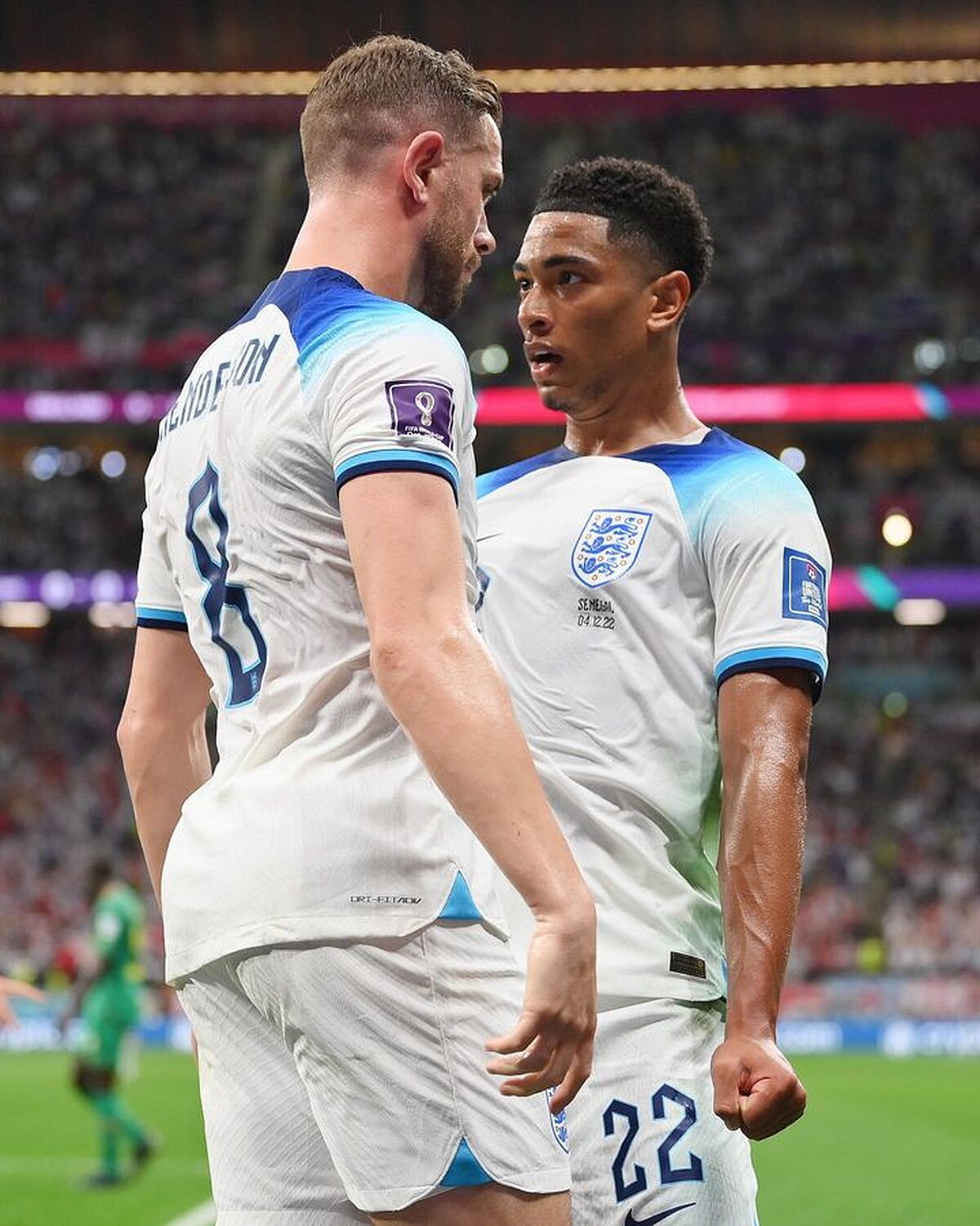 法國有吉魯跟姆巴佩最浪漫畫面,英格蘭這兩人的電力也不遑多讓啊!英格蘭在對上塞內加爾的比賽中,喬丹亨德森在上半場39分成功得分,讓英格蘭以1:0先馳得點,而貝林漢姆確認過眼神,亨德森就是進球(我)的人!