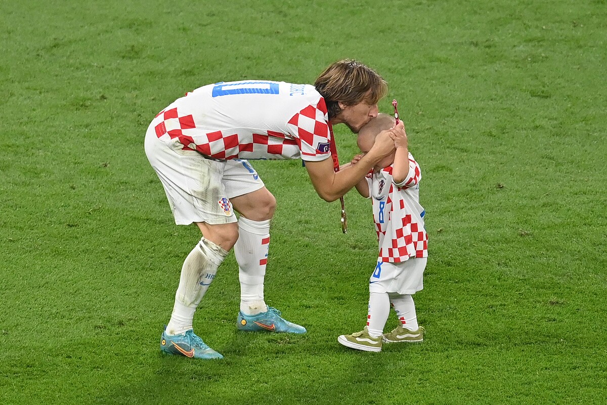 在賽後球員們與小孩一起慶祝,魔笛還溫柔的親吻著接班人柯瓦西奇(Mateo Kovacic)的兒子慶祝勝利,絕對也是2022世足賽中最溫馨的畫面之一啊!