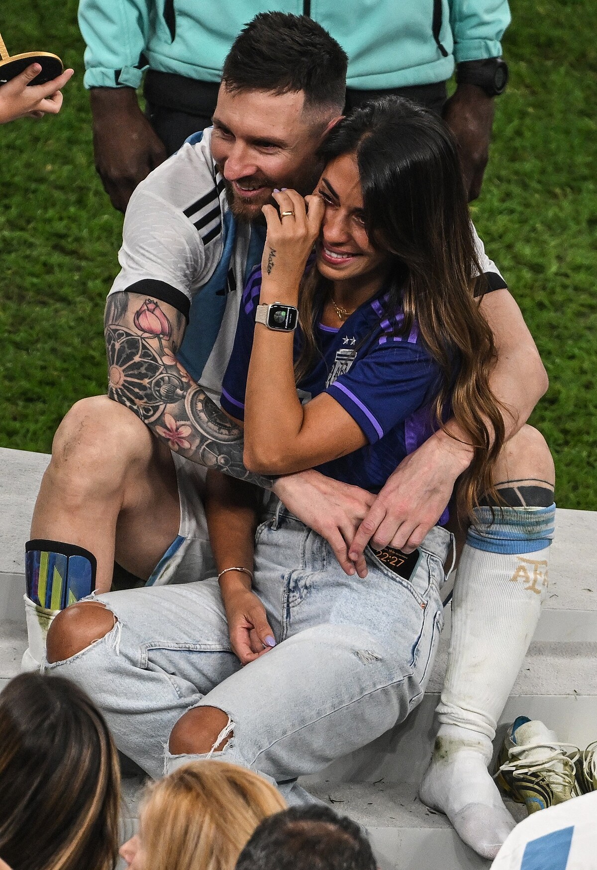 梅西在場上是叱吒風雲的阿根廷球神,私下是一位愛家的好爸爸、好丈夫,從9歲就愛上青梅竹馬也就是現在的妻子安東內拉羅庫佐(Antonella Roccuzzo),IG也常常跟老婆放閃,完全是「炫妻魔人」無誤!而在拿下世界盃冠軍後,他們一家人擁抱的幸福畫面又甜又溫馨!