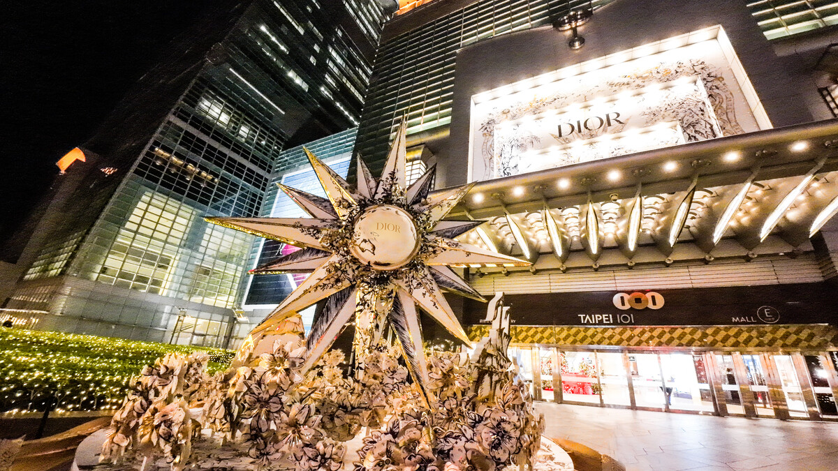 也因此,如今的台北101就像個大型的當代藝術館,透過每年與不同藝術家的合作,創造這棟超高建築人文溫度。漫步「新年驚豔101」雙跨年活動更能感受台北101對此的用心,館外可見璀璨亮眼的玫瑰光廊、出自羅馬藝術家Pietro Ruffo之手的Dior無限之夢耶誕樹,以及乘載夢想的夢幻馬車,讓顧客無法停止拍照。走入購物中心一樓,撲面而來的是樹木松香,這是台北101團隊為求讓人感受到更完整的五感體驗,從國外進口精品等級的諾貝松、檀香柏以及銀柏,搭配鑽石、珍珠、紅寶石等奢華吊飾,打造出不同主題的驚喜裝飾,吸引大家駐足,享受驚喜。