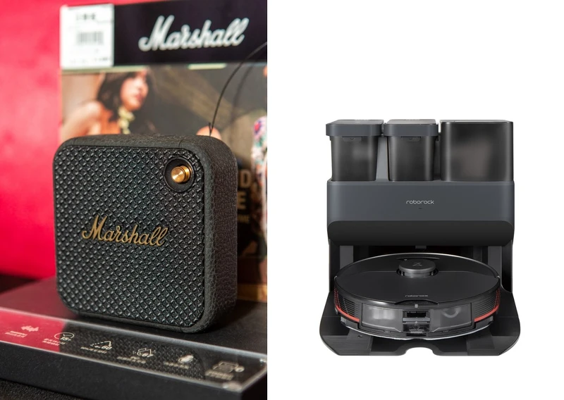 Roborock石頭掃地機器MaxV Ultra 特價59,999元 原價39,888元;Marshall Willen隨身藍芽喇叭 價值3,990(skm30,000點)。