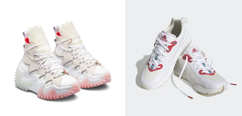 CONVERSE新年頑兔系列 RUN STAR MOTION CX HI VINTAGE WHITE RED 推薦價3,790元;ADIDAS CNY JELLY BOUNCE跑鞋 推薦價3,290元。