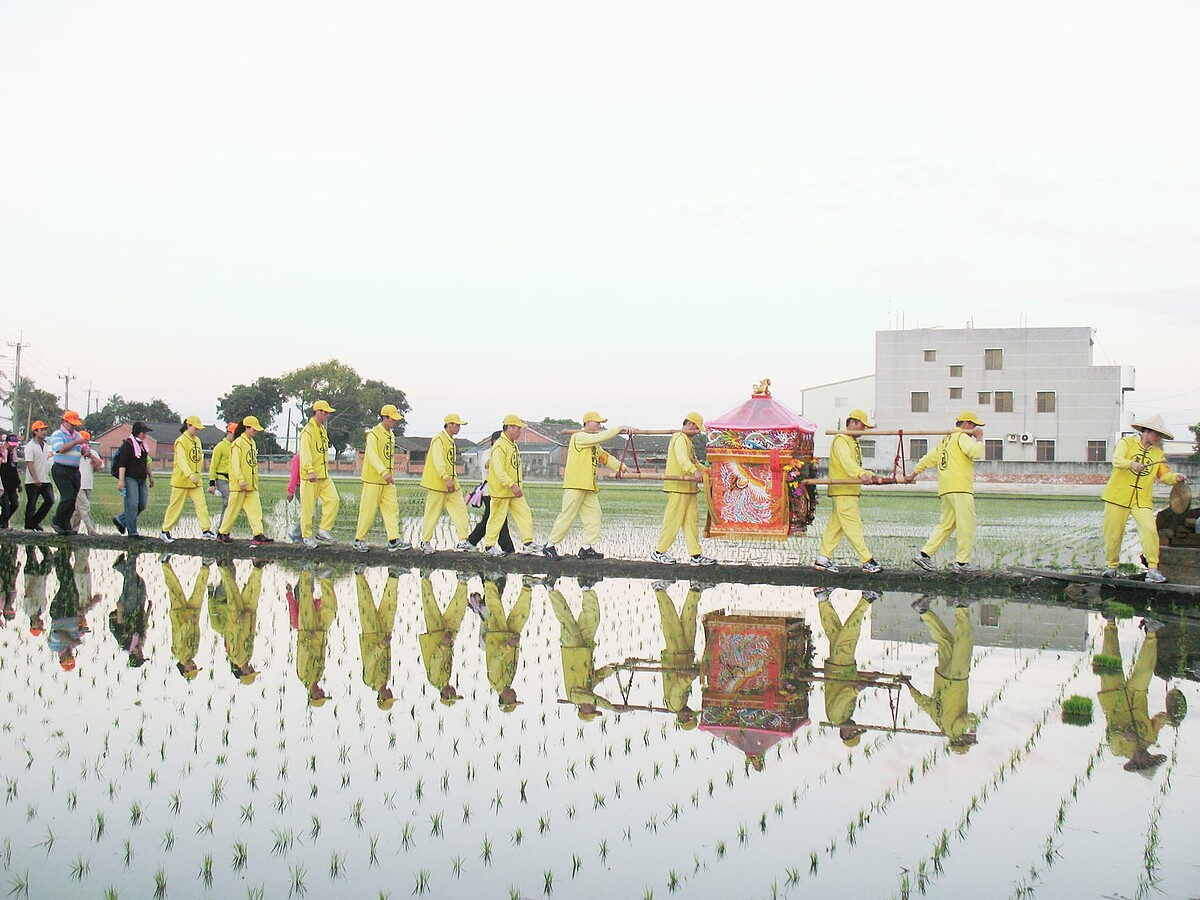 頭旗是媽祖進香出巡時,在前方打頭陣的先鋒,媽祖起駕前3天,廟裡會「放頭旗」,也就是把頭旗豎於廟前龍柱上,等於是詔告四方要準備進香了,香燈腳們此時會將家中的進香旗拿到廟中過爐,等於是向媽祖報到的意思。