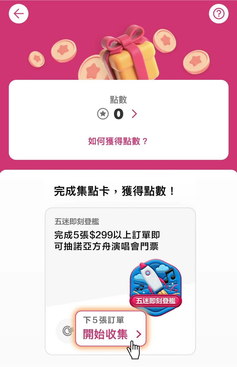 步驟2 選擇「五迷即刻登艦」集點卡,記得一定要按下「開始收集」,才會計算。