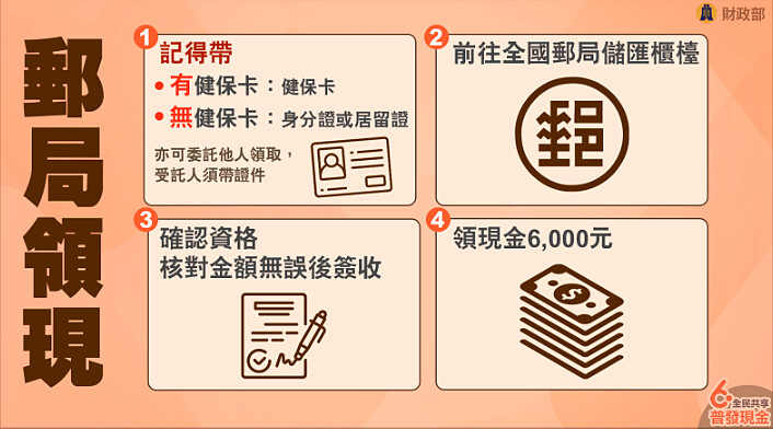 3. 郵局領現:至郵局營業時段臨櫃領取