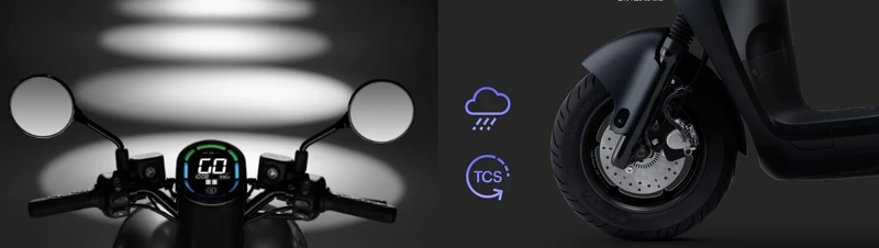 鎖車後會延時關閉的安心護送燈、在氣候或路況不佳時,也有 TCS 循跡防滑系統、雨天智慧模式幫妳適應各種路況、主動調節動力預防打滑…等設計配置,讓妳盡情耍酷沒有後顧之憂!