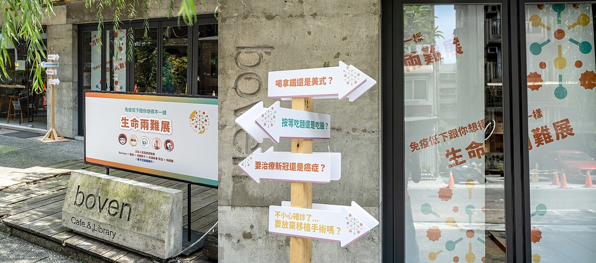 為了讓大眾更了解免疫低下族群受疫情影響的生命課題,台灣癌症基金會、台灣年輕病友協會、臺灣病友聯盟邀請黃子佼及五位人氣插畫家Duncan、囂搞、狗與鹿、消極男子、街頭故事 李白,呼應「兩難」主題創作展出,舉辦《免疫低下與你想得不一樣 生命兩難展》,邀請大家來東區巷弄間的咖啡廳,一邊喝咖啡,一邊走入他們的生活。