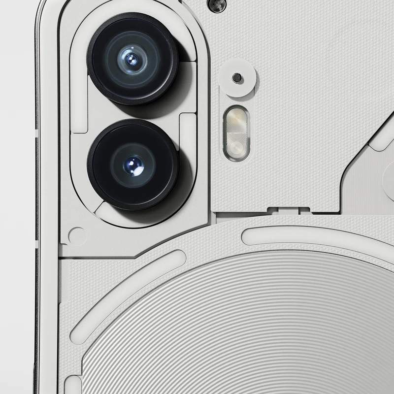 NOTHING Phone (2)搭載一個3200萬畫素前鏡頭與一對5000萬畫素後鏡頭(主鏡頭+超廣角鏡頭),主鏡頭更升級為Sony IMX890感光元件,並採用旗艦18-bit影像訊號處理器(ISP),NOTHING Phone (2) 可處理的相機數據為前代產品的4000倍,全新「Advanced HDR」演算技術,會在感光元件的RAW 域中捕捉8幀不同曝光層級的畫面,從而截取到更多數據,保留每幀畫面中的最佳細節,最終融合呈現出最真實的影像。「Motion Capture 2.0」則使用先進AI人工智慧,以即時識別移動目標,確保畫面中任何微小細節都能精確對焦。