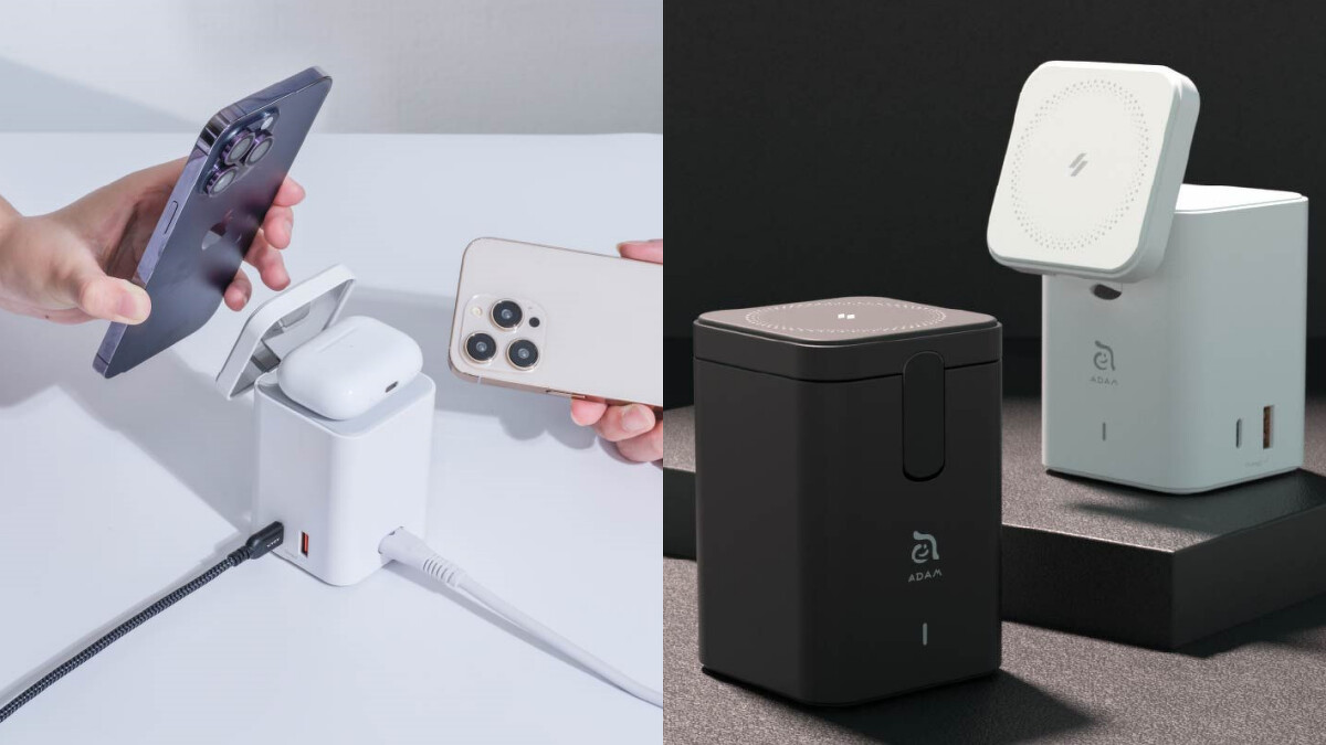 現代人最怕手機沒電,來自台灣的亞果元素ADAM elements,也順勢推出「Mag 4 GaN 30W 四合一電源供應器」,充電盤角度可達60度,能一邊使用、追劇及充電,後方還能幫AirPods耳機無線充電,兩個插孔分別為USB-C、USB-A,能一次為四台裝置充飽電力。其磁吸充電區,能吃支援iPhone 12系列~iPhone 15系列,售價1890元。