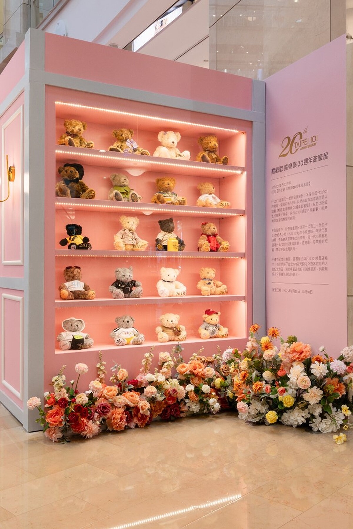 20週年慶期間,台北101特別在1樓信義長廊打造《熊歡歡 熊樂樂 20週年甜蜜屋》,從第1代到20代台北101紀念小熊齊聚一堂。台北101紀念小熊,是每一年週年慶時期,僅為會員限量推出的珍藏品,每一代小熊都見證著台北101的成長與演變,這將是一段華麗且甜蜜的紀實,引領賓客穿越歲月長河。此展覽與台北101的限定禮品店結合,為週年慶造訪賓客精選購物中心之中最受國內外遊客歡迎、最具代表性的紀念商品,讓消費者帶回家中與親朋好友分享這段難忘的時光。