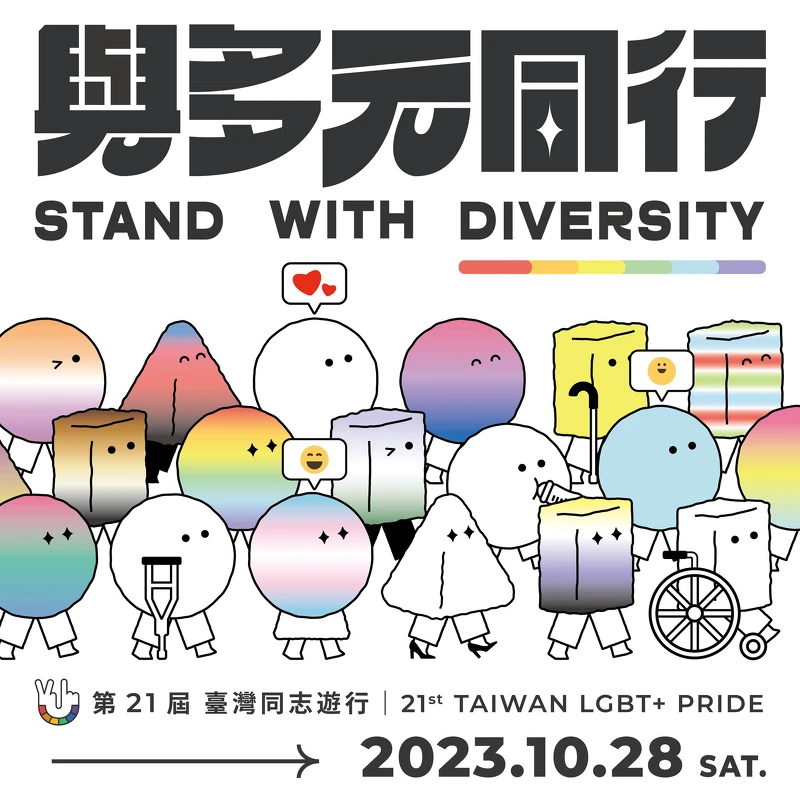今年同志遊行主題訂為「與多元同行(Stand with Diversity)」,期望能破除不同身分之間的對立,尊重彼此多元身分的交織。在重新思考如何闡述多元的概念時,也需要向社會繼續呼籲看見多元,理解不同身分、群體的需求與困境,且不再以身分限制對立你我。