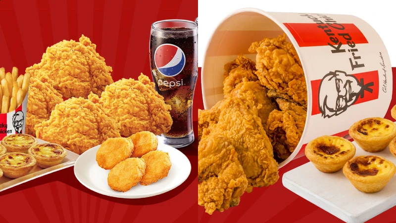 肯德基祭出史上超值333元優惠組:咔啦脆雞x6+原味蛋撻x6。咔啦雞腿堡x1+青花椒咔啦雞腿堡x1+花生岩熔咔啦雞腿堡+原味蛋撻x2+百事可樂1瓶。外送399元優惠:咔啦脆雞x4+上校雞塊x4+香酥脆薯(大)x1+蛋撻禮盒x1+百事可樂(中)x2。11/7~11/9搶先預訂,11/10~11/13限時開賣,僅只4天!