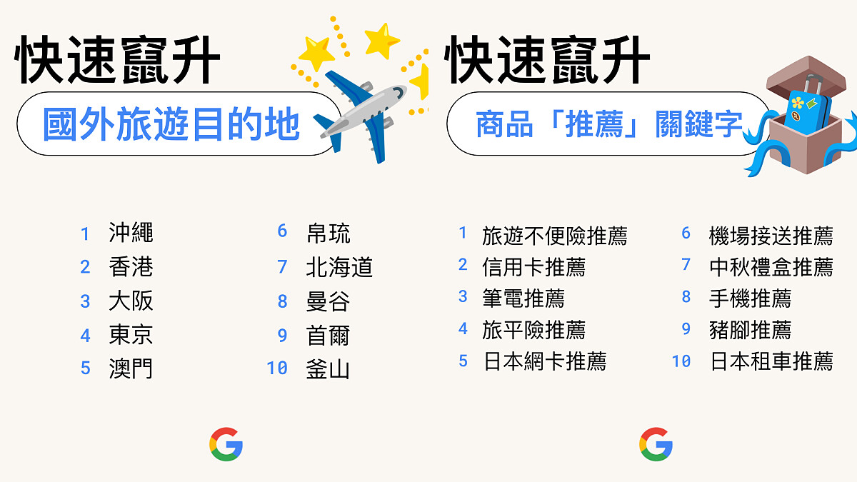 2023年度Google搜尋排行榜:日本是熱門目的地、商品推薦與旅遊有關