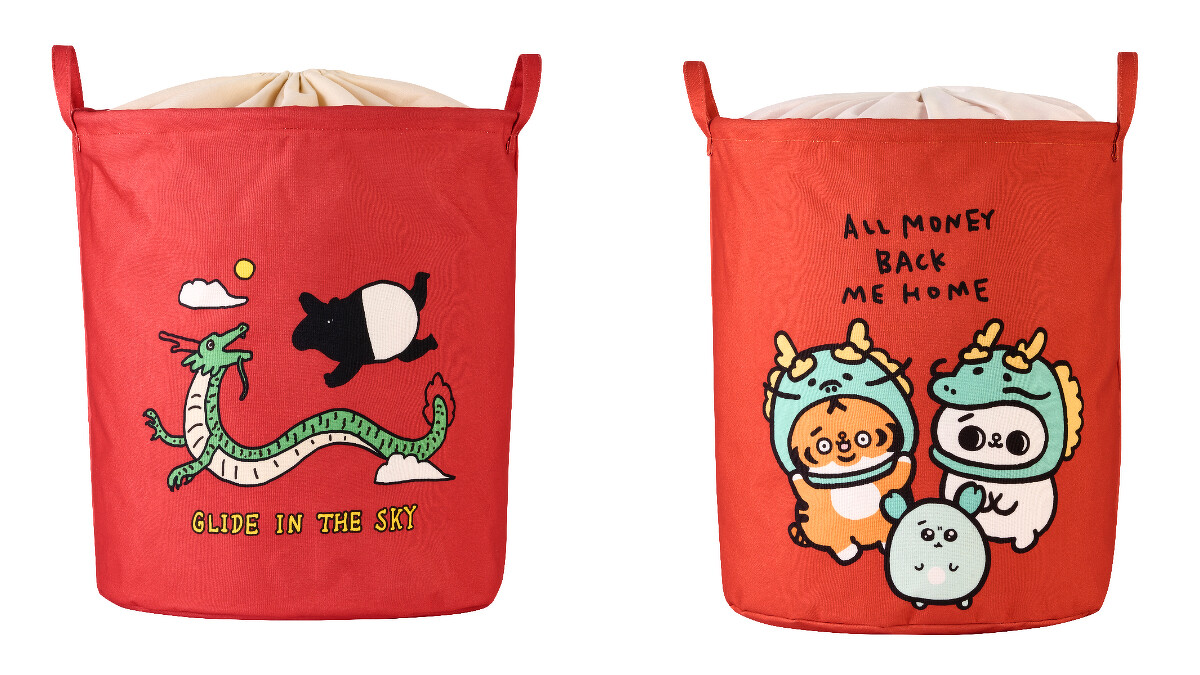 束口收納籃(航海王款、馬來貘款、爽爽貓與小勞撫款)、置物箱(吉伊卡哇款、布丁狗款、雙星仙子款)