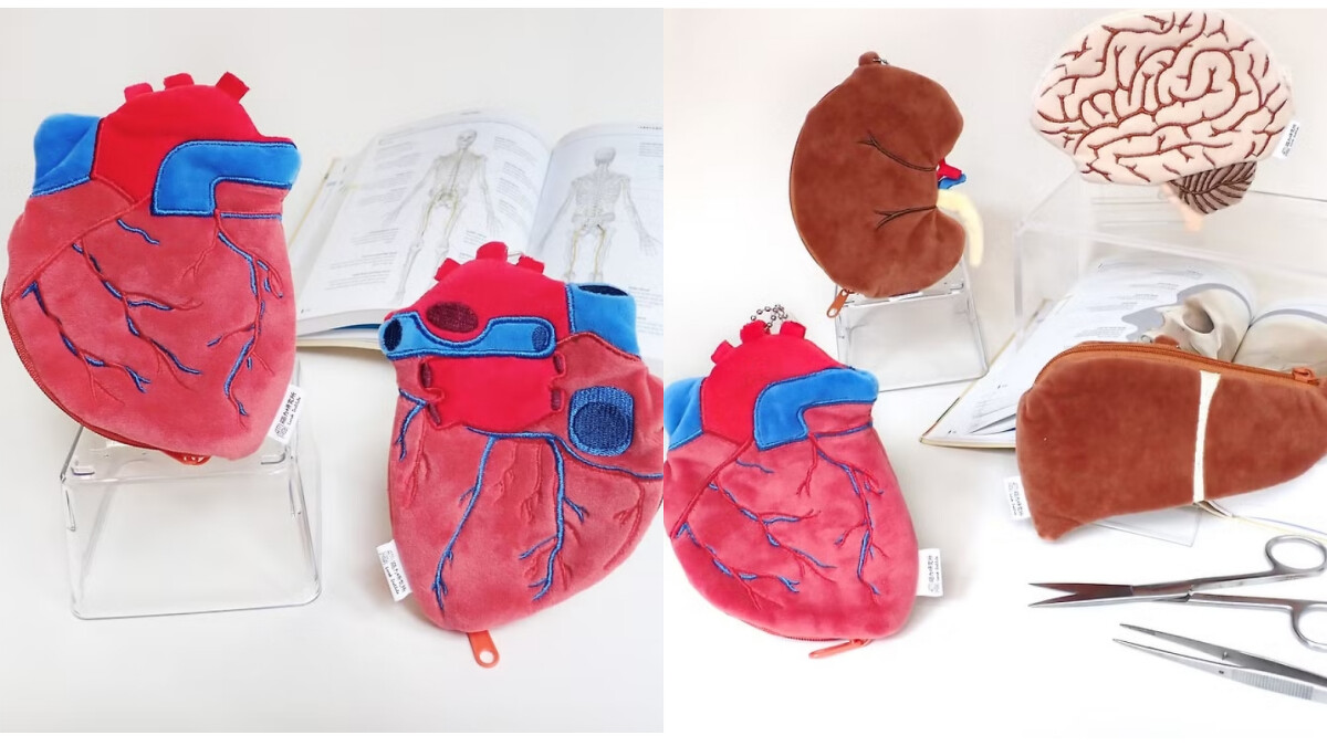 不只是心意,還可以把這顆心送出去!這款毛絨包的設計非常講究,將靜脈、動脈等組織畫得清清楚楚,大小約13公分適合當零錢包,分為心臟、大腦、腎臟和肝臟四個款式,也絕對不會跟別人撞禮物。