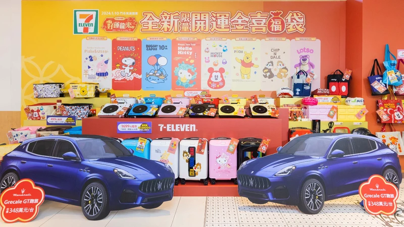 7-11「2024開運金喜福袋」來了!頭獎送2台「海神」瑪莎拉蒂,還有卡娜赫拉、史奴比等8大人氣IP坐鎮