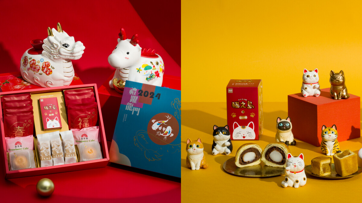 昇恆昌免稅商店以代表尊貴、力量的金龍及象徵吉祥的雙鯉魚為設計靈感,打造「禮躍龍門」新年過年禮盒,包括裕珍馨法式草莓蛋糕,由微脆草莓巧克力包覆鬆軟綿密的牛奶蛋糕,順口清爽不甜膩。昇恆昌監製的土鳳梨酥,選用彰化八卦山的土鳳梨帶有微微奶香,12小時慢火熬煮的內餡吃得到濃郁果香。躉泰紅晶酥則選用屏東萬丹紅豆熬煮綿密紅豆餡,與彈性十足的白玉麻糬完美融合。除了糕點,還有精品濾掛咖啡及超萌開運招財貓盲盒,貓奴別錯過。