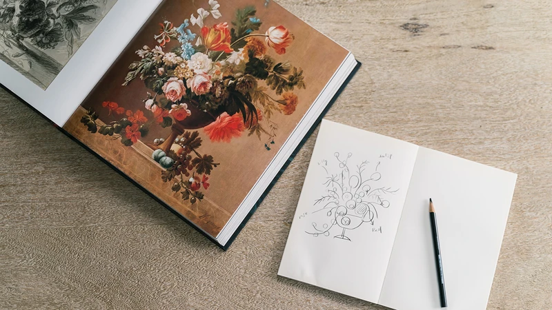 模仿創作:解構古典花卉畫,用草圖繪製建立插花佈局