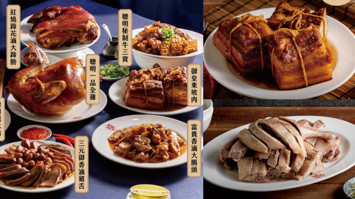 被網友美譽鴨肉界LV,在高雄飄香50年的「聰明鴨肉店」首次推出「富貴吉祥鴨」、「年年有餘鴨」與「步步高升鴨」三種吉祥年菜組,以及過年必備的聰明一品全雞、秘製牛三寶、御皇東坡肉,將懷舊功夫年菜端上桌。三組年菜組合裡必備的「聰明鹹水鴨」是招牌菜,選用每日凌晨的現宰溫體鴨,口感滑嫩吸附湯汁。