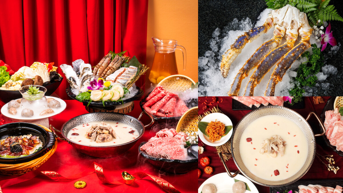 撈王的外帶年菜套組奢華等級不遑多讓,「奢華日本A5和牛套組」日本 A5 和牛伯樂、日本A5和牛板腱、澳洲黑毛和牛三叉,三款不同風味部位和牛的美麗油花一字排開霸氣大方,輕涮過後的鮮甜油脂在舌尖悄悄融化。「經典盤克夏豚套組」純盤克夏松阪豬、純盤克夏黑豬五花與丹麥梅花豬,三款頂級肉品質地細緻Q彈,尤其純盤克夏黑豬五花煮後油脂在口腔綻放出絕佳滋味。「極致鱈場蟹套組」主角為俄羅斯野生鱈場蟹腳、美國野生干貝、鮑魚等頂級食材,俄羅斯野生鱈場蟹生長於鄂霍次克深海,酷寒氣候造就蟹肉飽滿甘甜烹煮後釋放出澎派鮮甜海味與胡椒豬肚雞煲湯交融出馥郁滋味。