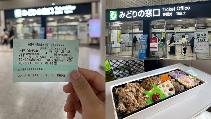 由於越後湯澤車站離東京市區不遠,有新幹線可以直達,所以非常適合到東京玩時順道造訪,但千萬不要跟我一樣少根筋,以為可以用西瓜卡搭新幹線,建議提前到上野車站,在賣票窗口劃位,還可以買個鐵路便當在車上享用,回程的話則可直接用賣票機劃位。如果時間充裕,建議可以在越後湯澤的溫泉飯店住一晚,許多旅客在抵達後,會先到裝備出租店預約裝備,然後悠哉地在溫泉街吃飯逛街,之後回到飯店泡溫泉,隔天一大早再精神抖擻地去滑雪。