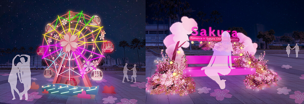 既然以櫻花為主題,初春最浪漫的關鍵重點當然不能少,所以在《高雄櫻花季》場域空間周圍,都有許多投入巧思精心打造的櫻花主題裝置,像是入口鳥區大門、浪漫櫻花樹、浪漫摩天輪、浪漫SAKURA裝置、浪漫雙人座、粉紅食堂…絕對是活動期間拍照打卡替自己留下美好日常回憶,同時也是洗版朋友圈拉羨慕仇恨值的最佳選擇去處。