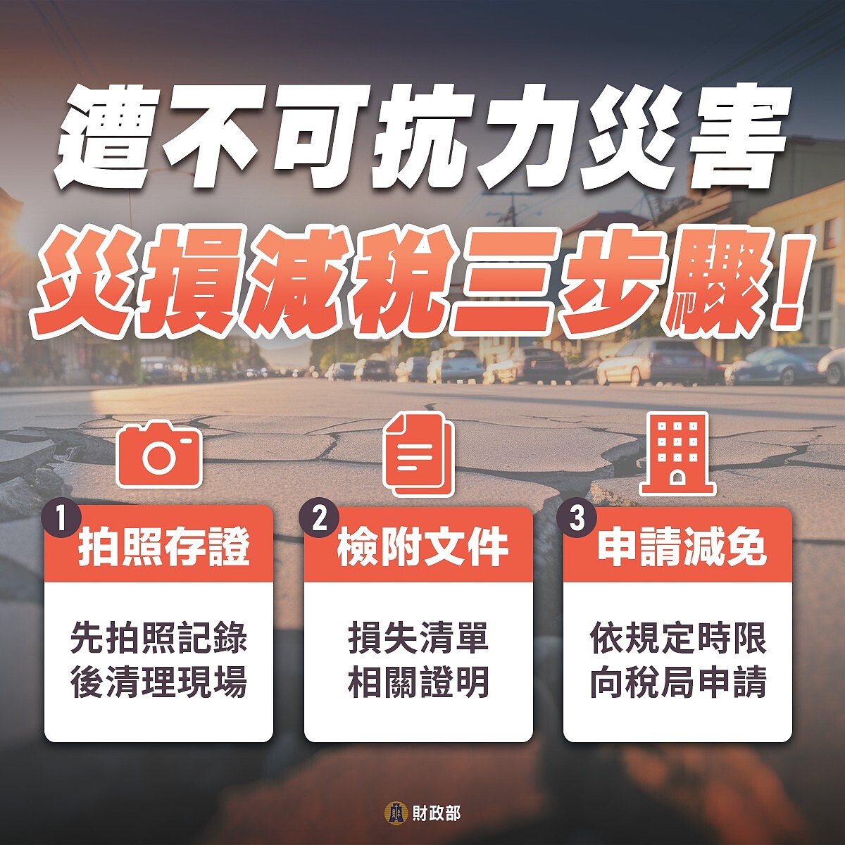 台灣東部4/3發生芮氏規模7.2有感地震,如有財務損失,財政部也列出「災害損失減免」的申請事項,提供給有需要的受災民眾!