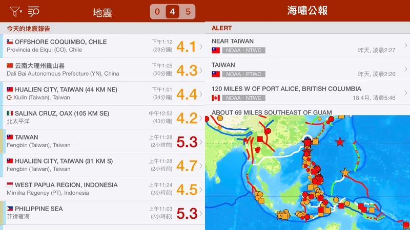 這款APP可以很清楚的一覽全球地震情況,如果你是住在沿海地帶的居民,也可以在這裡查詢到各地海嘯相關資訊,是款非常實用的APP!但如果想要災難通知服務的話,就需要付費150元台幣升級成專業版本,如果你只是想要簡單查詢地震震央以及規模,免費版的就可以囉。優點是透過這款APP一次從多個來源獲取最新的全球數據,每次地震後有詳細視圖,可從地圖和時間軸獲取更多訊息。