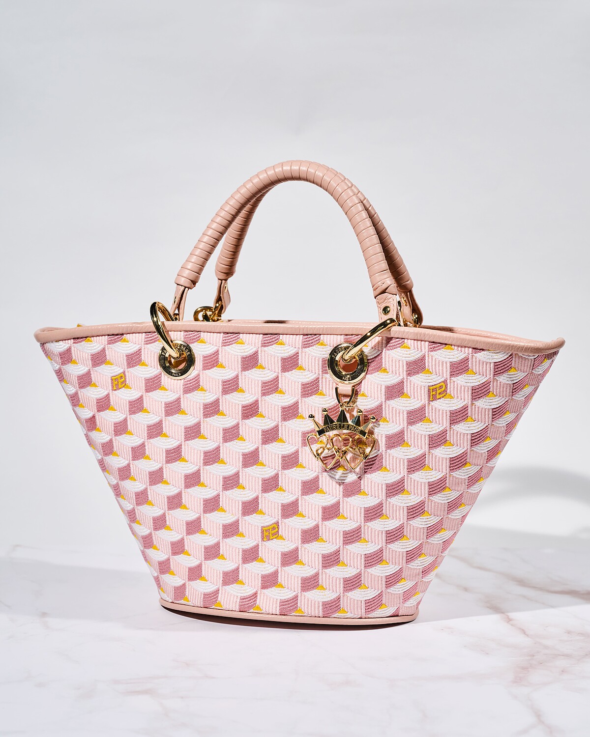 來自法國巴黎的高級皮件品牌,在時尚圈中已有300多年的歷史,包身上獨特的龍鱗紋是經典象徵,春夏新一季系列中則將圖騰換上粉色典雅氣息,並結合優雅身型的托特手提包款,打造各種場合都溫柔雅緻的時尚氣氛,其以愛心連串皇冠的金屬吊飾更添精緻美麗。