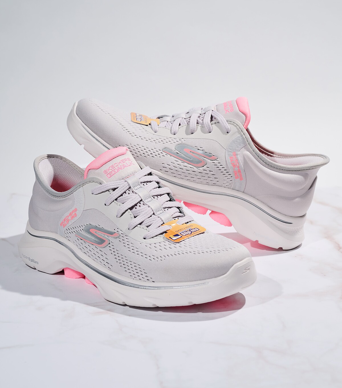一到假日就想出門健走、步道運動,備有一雙好走的鞋是必須的!GO WALK 7系列健走鞋提升了鞋款的輕量感,更針對避震緩衝性能做升級改善,舒適柔軟的穿著感,即使長時間久走都不顯疲累。為了春夏時尚好搭,挑選清爽的銀粉配色更讓搭配與眾不同。