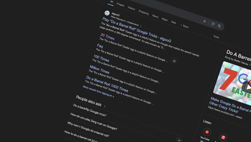 另一個有趣的 Google 彩蛋是可以命令他做一些有趣的體操動作,像是在搜尋欄打上「do a barrel roll」(做個側翻),網頁馬上就翻了一圈給你看,實在是太可愛!