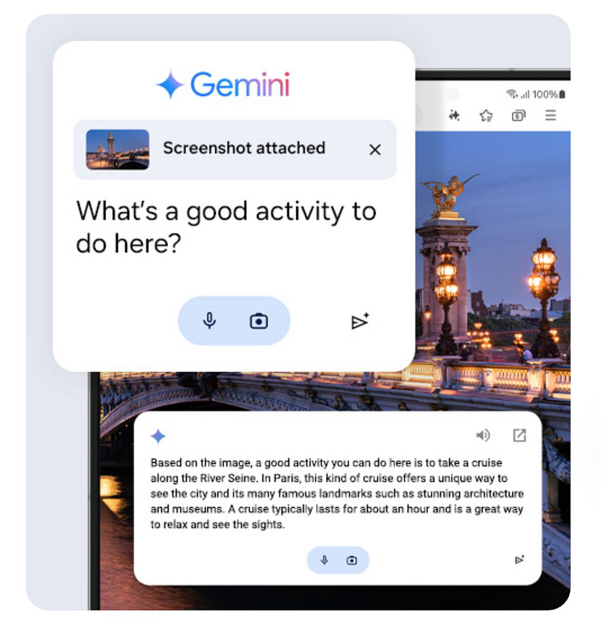讓手機上擁有個人專屬AI助理,僅需從螢幕底部角落向上滑動或說出「Hey Google」,即可啟動Gemini輔助用戶寫作、學習或制定計劃等。
